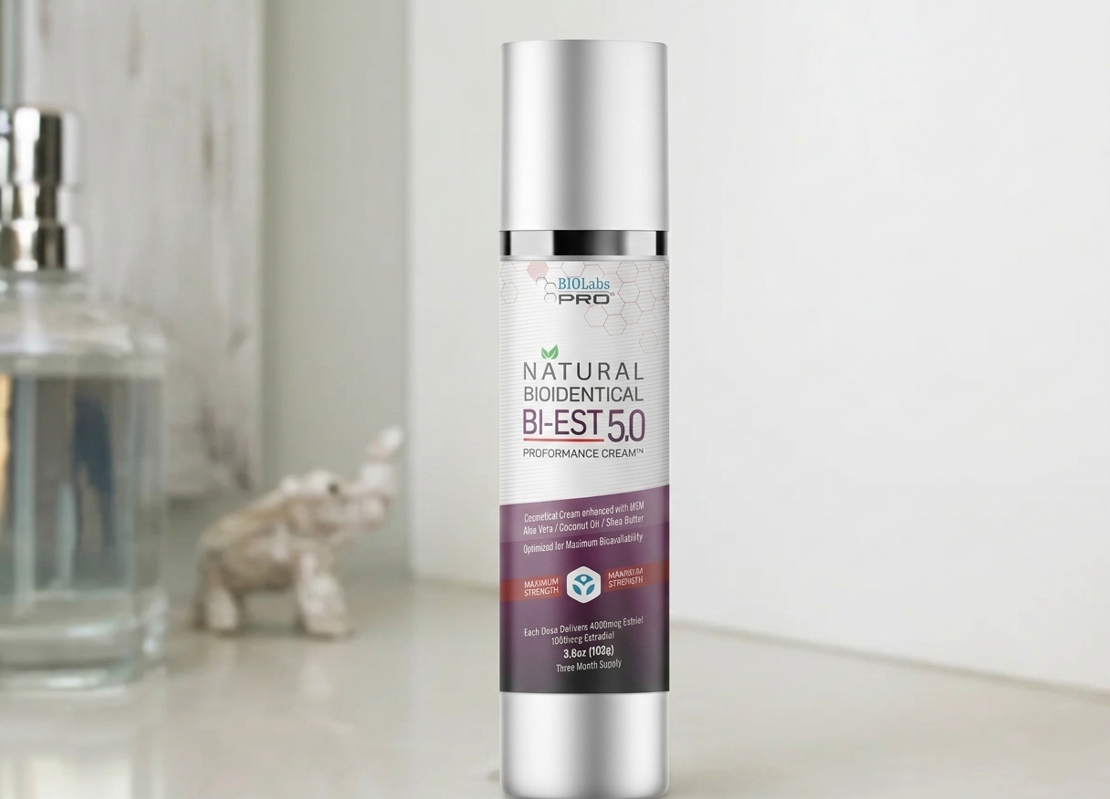 Bi-EST 5.0 is a professional-strength topical cream delivering 5 mg of bioidentical estrogen per pump—composed of 4 mg estriol (E3) and 1 mg estradiol (E2). It’s formulated for maximum transdermal absorption.